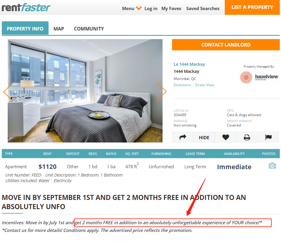 蒙特利尔市中心一个公寓出租单元还给出了神秘礼物,不仅提供两个月的免费租金,而且形容“您的选择绝对有难忘的体验”…