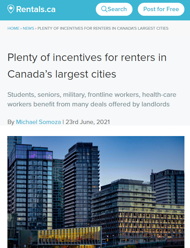据Narcity报道,加拿大各地的房东都在使用价值上千的奖励措施只为让人们住进他们的公寓,这些激励手法有的新奇,有的奢华。