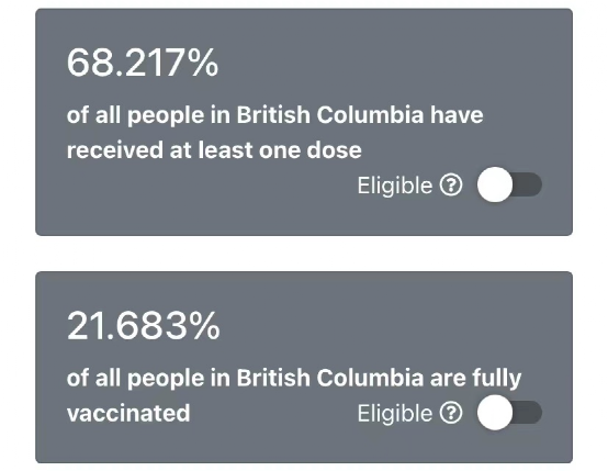 BC省的情况则要更好一些:截至6月25日,68.2%的人已经接种了第一剂,21.6%接种了两剂。