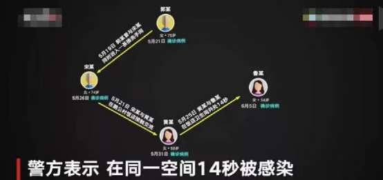 5月19日,不知道自己感染了Delta的1号女士和2号女士同时进入洗手间,在同一个洗手间里共同待了90秒,2号女士中招!