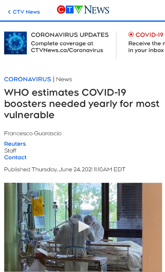6月24日,媒体披露出一份世卫组织的内部文件,文件中显示,世卫组织计划对高危人群每年补种新冠疫苗加强针,一般人群则每两年补种一次加强针。