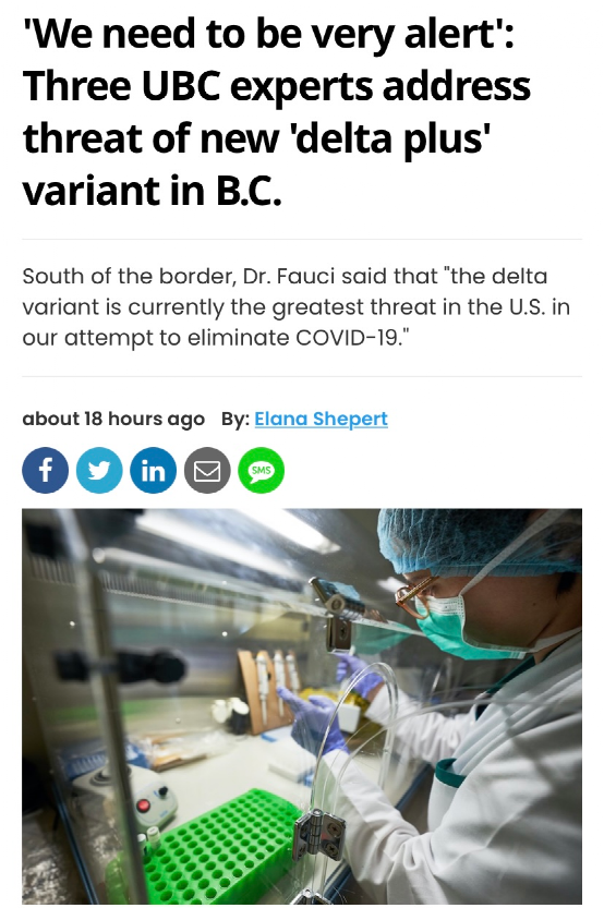 UBC三名学者集体发声提醒:一定要小心Delta Plus,绝不能让它在BC省传播开来。