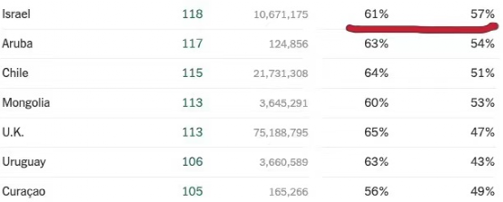 由于跟辉瑞签署了信息共享换疫苗的协议,以色列成为全球第一个获得大量辉瑞疫苗的的国家,也是目前世界上疫苗接种率最高的国家。