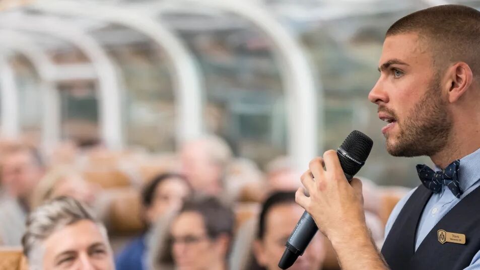 金枫车厢的上层是全透明景观车厢,头顶、左侧、右侧都是美景环绕,比敞篷汽车还极致。光是这一点,就能值回票价,下层车厢则是“移动的米其林餐厅”,保证每一顿都是五星级酒店大餐。