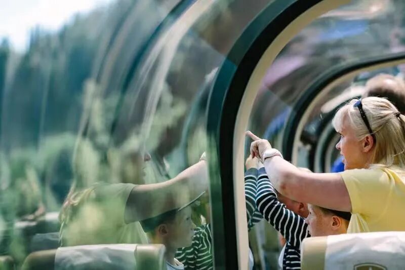 落基山登山者号最吸引人的地方,是它的观景体验。如果你选择的是头等舱Golden Leaf金枫车厢的话,能享受近乎无遮挡的景观: