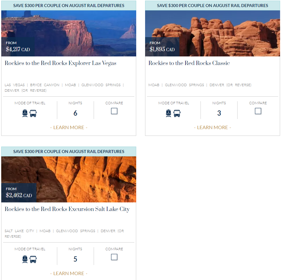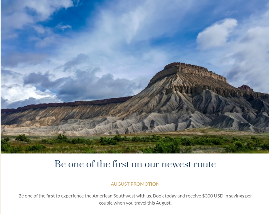 落基山登山者号观光火车,在美国西南部也能乘坐!美国线路八月促销活动,每对夫妻能节省300元左右,优惠在8月31日到期,可选的线路依然是三个: