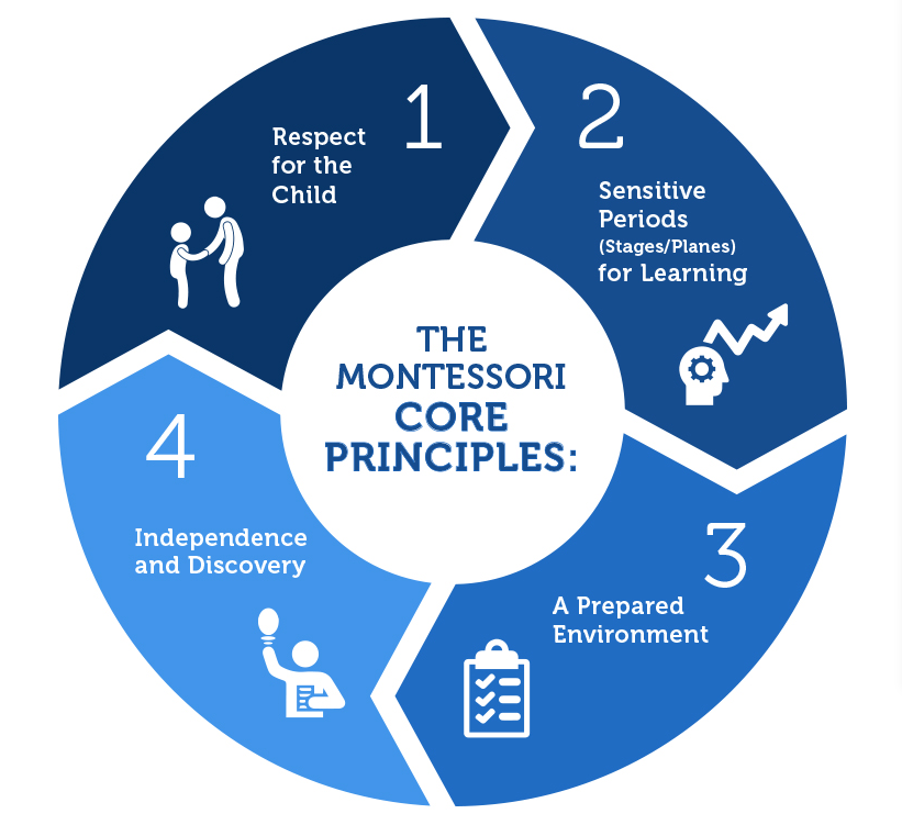 通过Maria Montessori创造的教育方法以及课程,着重锻炼学生的自主学习能力。由受过蒙特梭利培训的老师来创造一个充分支持、精心准备的学习环境。除了学前班和七年级是独自分班教学以外,一至三年级(6-9岁)会在一起学习,四至六年级(9-12岁)一起。混龄教学的一大优势就是年幼的孩子可能因大孩子的学习内容激发兴趣,而年龄稍长的孩子也会学习如何充当小一点孩子的榜样。