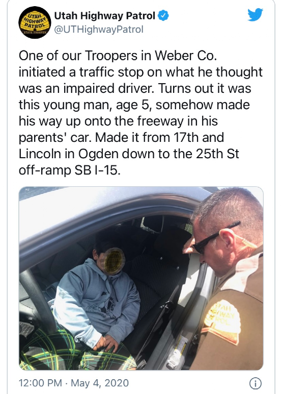 【加拿大乐活网lahoo.ca Fecilia综述】“很想和你再去吹吹风,去吹吹风……”张学友这首老歌绝对深入人心。和爱人开车兜风是浪漫,和家人开车兜风是温馨,但一个只有7岁的熊孩子独自开车上路兜风,就……是灾难了。