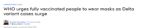 而世界卫生组织 (WHO)6月25日在日内瓦举行的新闻发布会上刚刚警告各国:即使是那些已经接种过两剂疫苗的人也应该戴上口罩并保持社交距离,因为传染性更强的Delta变种会在全球引发新一轮新冠疫情。