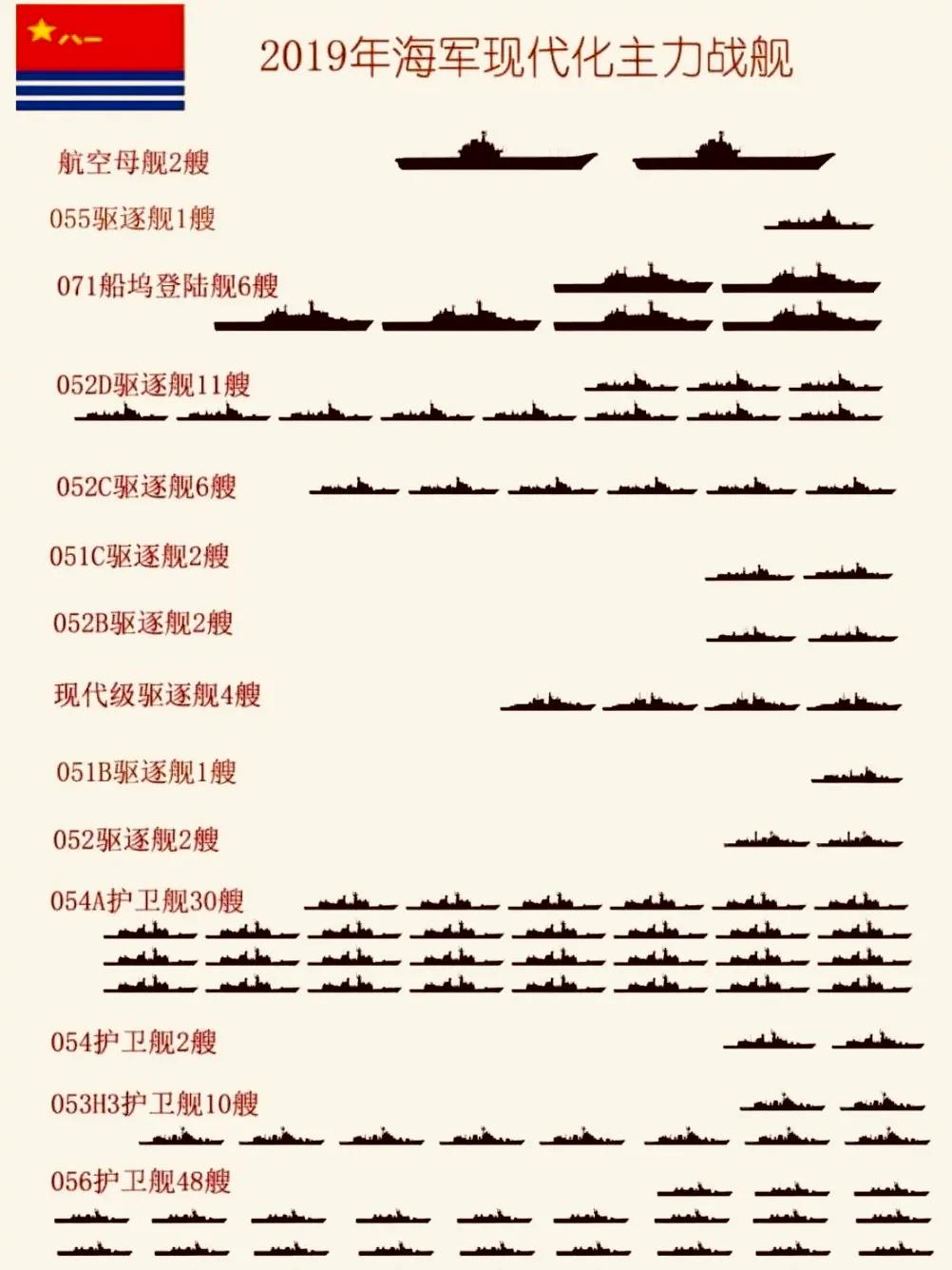 以下是2019年中国海军主力舰船统计图。