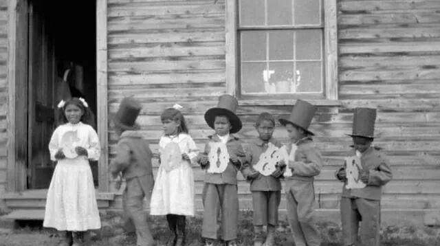 在武力胁迫和“不服从就坐牢”威胁下,成千上万原住民部落儿童被强行带离父母和家庭,送入条件恶劣的寄宿学校,他们“被剪掉头发,禁止说自己传统的语言,不许跳本民族舞蹈,不许信奉传统宗教,必须永久性和父母、家族断绝关系”。