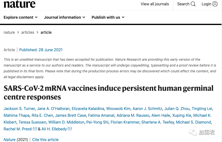 研究小组还发现,即使在第二剂接种后12周,生发中心仍然活跃。