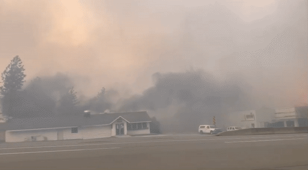 火势以每小时20公里的速度扑向城镇,几乎瞬间就席卷了一切!学校、餐馆、酒吧、教堂、住所……,无一幸免。火焰撕裂了建筑物,烟雾弥漫在空气中,天空暗无天日并发出橙色光芒。人们被迫开车逃命,连随身物品都来不及收拾……