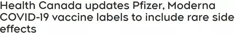 加拿大卫生部6月30日更新了辉瑞新冠疫苗和Moderna新冠疫苗的标签,在标签里加上了关于接种后出现罕见心肌炎和心包炎的警告。