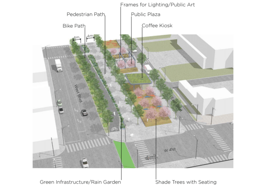 未来41街区域的绿道将会是路段5的开发重点,此路段宽度达到20米!这里既有4米宽的步行区,也有4米宽的自行车道。将有路灯、长椅、休息区、小广场、咖啡亭和茂密的花草树木。小广场上可以举办文娱活动和庆祝典礼,有公众艺术品展示,是洋溢活力的社区场地。人们可以閒坐休息,庭园漫步,在小食店享受美食,与朋友喝杯咖啡。