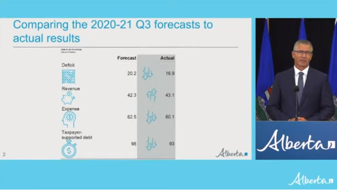 阿省财政部长Travis Toews在周三的新闻发布会上表示,在受COVID-19大流行和能源价格暴跌的重创后,阿省已开始在整个经济中看到了积极迹象。 林业和农业恢复强劲,科技等新兴行业也为改善经济成果和增加政府收入做出了贡献,重新开放也提振了省内旅游业和服务业的复苏前景。