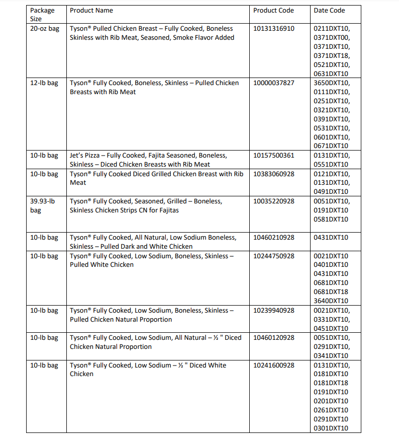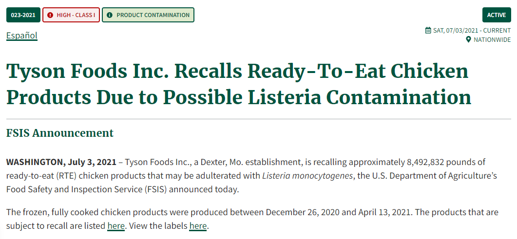 具体的召回名单为:(网址>>https://www.fsis.usda.gov/sites/default/files/media_file/2021-07/Tyson%27s%20Product%20List%20Final.pdf)