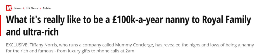 近日,一名来自伦敦的保姆就分享了自己作为一名年薪百万,专门在皇室和超级富豪家里打工的经历。