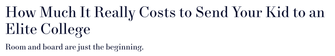 根据美国Town & Country (T&C,一家描述美国生活方式的月刊杂志)的统计,美国家庭为子女接受高等教育的付出名列全球首位。不过对富有家庭而言,教育投入远在支付第一笔大学学费之前已经发生。