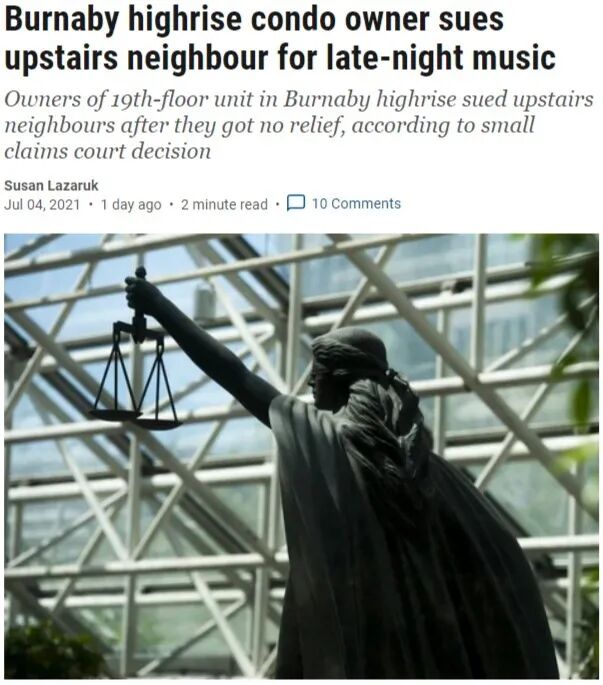 根据BC省民事调解法庭的判决书,本拿比高层公寓的华裔房主C和T将因噪音骚扰,获赔2500加元。