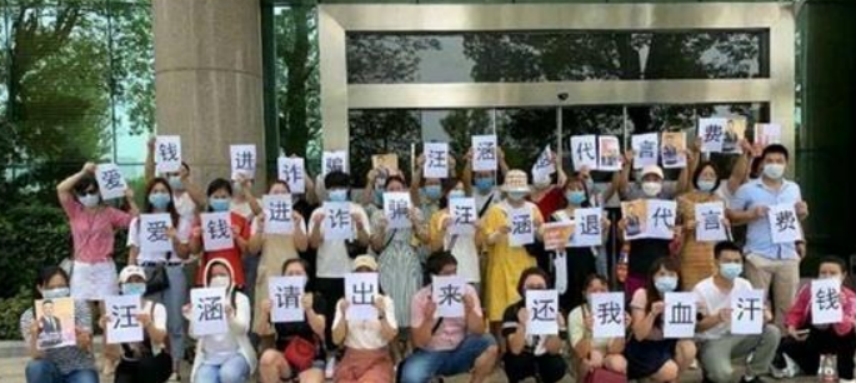 一夜之间,代言人汪涵站在风口浪尖处。有被骗人员来到公司门口,举着“汪涵请出来还我血汗钱”。
