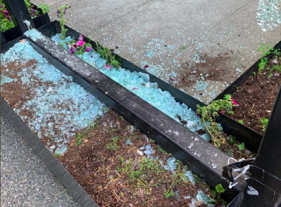 现场布满了碎玻璃碴,一地狼藉。在场有50多名目击者,全都吓得目瞪口呆。