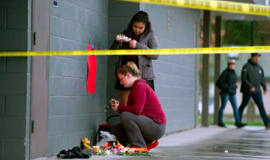 师生们在莱蒂莎·雷默遇害的地方纪念 图自:CBC