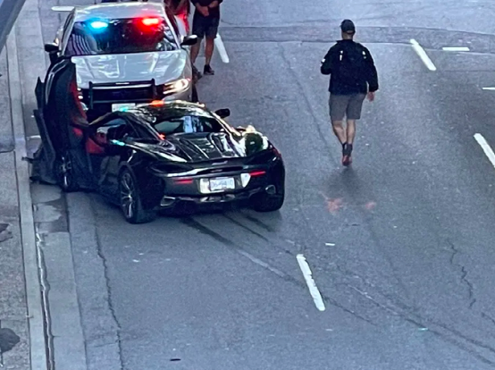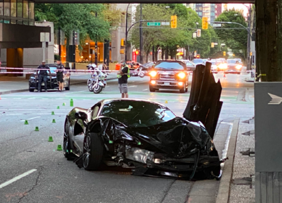 跟迈凯轮相撞的是一辆福特SUV,据现场目击者称,SUV超速闯红灯过十字路口,结果撞上了迈凯伦。