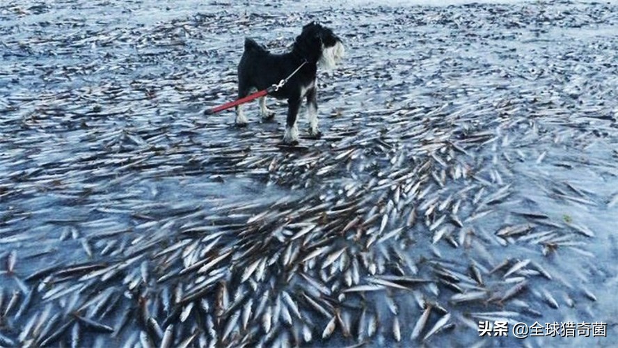 海岸边的冰层里冻结着成千上万的鱼儿,