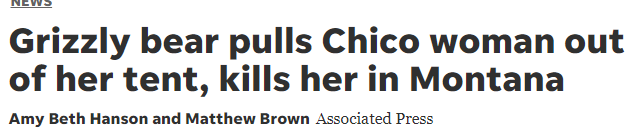 根据美国鱼类和野生动物管理局的数据,在过去二十年中,该地区还发生了两起灰熊伤人事件。