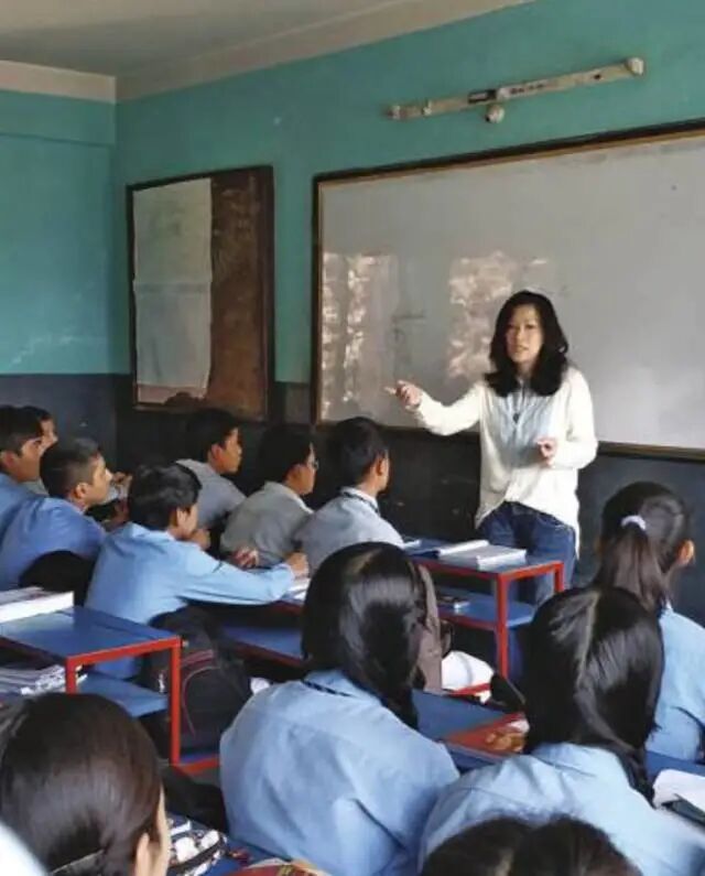 陈慧珊在尼泊尔当老师,给学生们讲课
