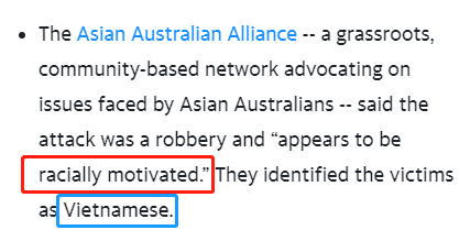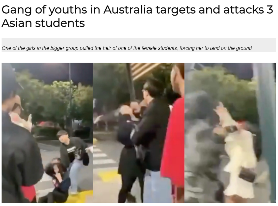 三名亚裔留学生被围殴!女孩惨遭抓头拖拽痛哭!暴徒狂笑拍视频炫耀!2021-07-12 |作者: | 来源:加拿大留学生问吧大洋洲生活分享:#亚裔#大洋洲#生活 近日, 一段令人不安的视频在全网爆火。 视频讲述了一段暴虐行为。 在澳大利亚布里斯班一个购物中心外, 一群年轻人暴力围殴三名亚裔留学生。 图源:The Independent 视频开始, 被袭击的三名亚裔学生, 与施暴者在口头交流: “你们要干什么? 我们没有对你做什么!” 当唯一的男生看到施暴者有袭击倾向时, 立刻向施暴者怒吼试图吓退他们。 但貌似并没效果, 一名施暴女生突然上前, 一把抓住其中一名受害女生的头发, 将她拽倒在地。 图源:Youtube 受害男生试图保护她, 但不幸寡不敌众。 而此时, 另一名白衣女孩也受到了殴打。 图源:Youtube 随即, 周围施暴者一拥而上。 场面变得十分残忍, 多人殴打被拽到在地的黑衣女生, 两人殴打白衣女孩, 而红衣男子则与受害男生拳脚相向。 视频中, 还能听到受害女生在阵阵哭泣! 图源:Youtube 拍摄者也是施暴人之一, 拍摄的同时, 对受害亚裔学生嬉笑怒骂, 嘴中不停大放厥词: “Gang sh*t!Gang sh*t!” 在一段时间的暴力行为后, 红衣男子走向镜头, 满脸挂满了令人恶心的笑容! 视频链接: https://www.youtube.com/watch?v=tDoCL-1M6sY 事后, 视频拍摄者竟然还将视频上传公开。 随即被他人转载至Reddit, 并瞬间火爆全网! 在受到各大媒体的争相报道的同时, 也引起了警方的关注。 图源:雅虎新闻 但Reddit上的原贴, 目前已被封锁评论。 图源:Reddit 转帖: https://www.reddit.com/r/aznidentity/comments/ockllk/group_of_australians_attack_three_international/ 经过调查, 警方证实此事件发生在6月27日。 同时, 警方确认受害学生为越南人。 此次袭击是出于种族动机的。 图源:雅虎新闻 其中一名目击者称, 此次参与袭击的至少有7人, 他们在案发前就一直在“找麻烦”。 而案发前, 施暴团体还偷了被害者的钱, 由此引发冲突。 目前, 昆士兰警方已经获得了相关视频资料, 并且接到了目击者报案。 他们表示正在进行进一步的调查。 然而, 事件已经过去了整整两周, 对施暴者的惩罚仍迟迟未到。 正义不会缺席, 但也别迟到太久! 远在海外的留学生们, 外出一定要注意安全。 阅读 未经允许不得转载:加拿大乐活网 »三名亚裔留学生被围殴!女孩惨遭抓头拖拽痛哭!暴徒狂笑拍视频炫耀!分享: