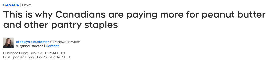 “过去 20 年来,花生酱的价格一直保持不变。从2000年到 2020 年,花生酱的价格是一样的,但今年除外;它上涨了 6%。”Charlebois 说道。