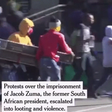 此前,因为反对前总统朱玛(Jacob Zuma)入狱服刑,多地支持这位总统的民众走上了街头,要求立即释放79岁的朱玛。