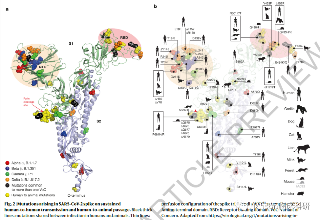 3)COVID-19可通过S蛋白单一突变即改善对于宿主的亲和力,从而可以感染不同物种。