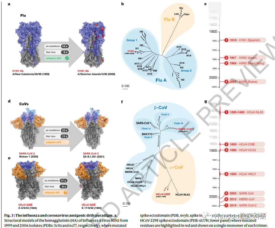 2)病毒不断形成突变以逃逸人体的免疫反应,比如Beta突变株(B.1.351)仅通过12个S蛋白的氨基酸突变可以使疫苗接种或者既往感染的血清中和活性下降10倍。