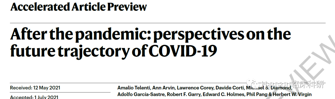 2021年7月8日,Amalio Telenti等人在Nature写了就目前理解下极棒的关于COVID-19疫情发展方向的观点文章,通过分析以往呼吸道病毒疫情的结局,以及SARS-CoV-2的感染规模,人群免疫程度和病毒突变速度,预测了COVID-19疫情可能的发展方向。