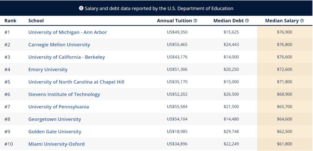 实用 | 热门专业在哪些学校就读,毕业能拿最高薪资?2021-07-19 |作者: | 来源:美国研究生留学快讯大温家长会留学分享: 对于留学,大家都知道选专业的重要性,而薪资水平又是反映一个专业发展前景的重要因素。 以往有很多专业薪资的排名,在做调查时选取的部分毕业生已经工作多年,即到达了职业发展的中期。这些人的薪资与刚毕业时相比已经有了较大差距,因此,有时这些数据以及排名不能很准确的体现该专业最接近当下的薪资水平。 而GradReports避免了这一情况。该网站主要面向毕业一年内的学生,基于10万多个学位课程中500万毕业生的起薪数据,列出了某些专业学生毕业一年内薪资最高的美国大学排名。 排名涵盖70多个学士和硕士层次专业,外加20个最受欢迎的在线学位课程。从中我们可以了解到,在各个申请热门领域,哪些学校的学生能获得最高的薪资待遇。 计算机科学 近几年,CS在留学圈的热度持续高涨,毕业生几乎人均“百万年薪”。其中,布朗大学、卡耐基梅隆大学、哈佛大学毕业生起薪稳居全美前三。 布朗大学计算机科学专业提供理学和文学两个方向,理学方向提供的数学和科学内容占比较重。值得一提的是,该校CS毕业生的年薪中位数为141,100美元。 商科 密歇根大学安娜堡分校、卡耐基梅隆大学、加州大学伯克利分校位居榜单前三甲,年薪换算成人名币均超50万。 密歇根大学安娜堡分校的罗斯商学院(Stephen M. Ross School of Business)还提供本科阶段的工商管理学课程。学院每年都会吸引众多名企前来进行校园招聘,毕业生就业率常在95%以上。 经济学 经济学专业排名最高的大学当属杜克大学、达特茅斯学院和芝加哥大学。 杜克大学经济系分文理两个研究方向。其中理科方向学生更多,文科学生大多是为那些对经济史感兴趣、不打算成为经济学家的学生设计的。 杜克大学经济学专业近半数学生获得MBA学位,不少学生还选择继续攻读博士学位。 金融 金融专业中,宾夕法尼亚大学、卡耐基梅隆大学、乔治城大学位列榜单Top 3。其中宾大金融毕业生年薪高达70万人民币。 宾大拥有世界历史最悠久、学术声誉首屈一指的商学院——沃顿商学院,专注于金融学教育,强调丰富的学术经验,以及成功应对快速发展的全球经济所需的基本工具。 化学工程 莱斯大学凭借其毕业生高达80100美元的年薪水平排名第一,德州农工大学、麻省理工学院分列第二和第三。 莱斯大学提供化学工程领域中的高阶课程,这些高阶课程对那些想在医学、法律或者商业领域继续深造的学生非常有用。 总的来说,高薪专业中有不少在STEM领域,再就是包括商科、金融、工程、信息技术、数学和护理。 随着社会对医疗服务的需求加剧(尤其是疫情之后),医疗保健行业前景非常光明。护理学专业毕业生薪资本来就高,如今更是成为最具“钱景”的专业领域。 索诺马州立大学(Sonoma State University)的护理学院在学术界极富盛名,其毕业生年薪高达110,300美元,甚至比大热的金融专业毕业生薪资还要丰厚。 另外在该专业领域,加州州立大学东湾分校和加州州立大学萨克拉门托分校也榜上有名。 责任编辑:柳叶刀 联系小助理,加入大温家长群! 声明:转载此文是出于传递更多信息之目的,并非代表本站支持其观点。若有文字、图片及视频等素材来源标注错误或侵犯了您的合法权益,请作者持权属证明与本网联系,我们将及时更正、删除,谢谢。阅读 未经允许不得转载:加拿大乐活网 »实用 | 热门专业在哪些学校就读,毕业能拿最高薪资?分享: