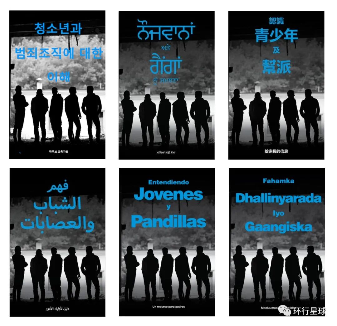 加拿大反帮派联合特别执法部门(CFSEU-BC),为防止黑帮吸纳更多青年所制作的《认识青少年及帮派》手册,有英语外的多个语言版本。图:cfseu.bc.ca