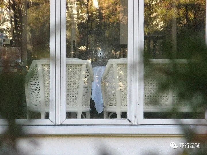图为2017年袭击后,帕特家其中一个窗户上的弹孔。报案者是其邻居,邻居告诉记者他知道这是针对帕特的行动,所以当他听到枪声时并没有担心自己的人身安全。图:Adam Carter/CBC,cbc.ca▾