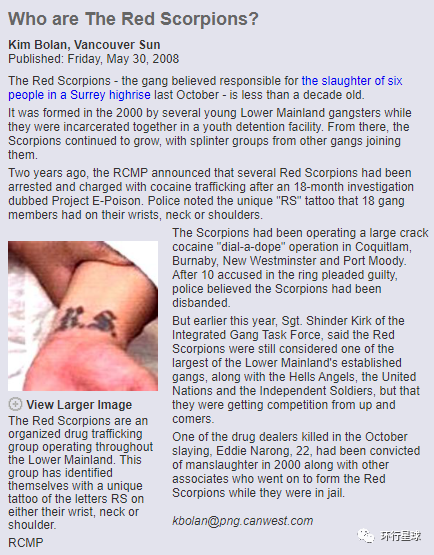 “什么是红蝎子帮派?”,该介绍文章中配图为红蝎子成员的纹身。图:网络▾