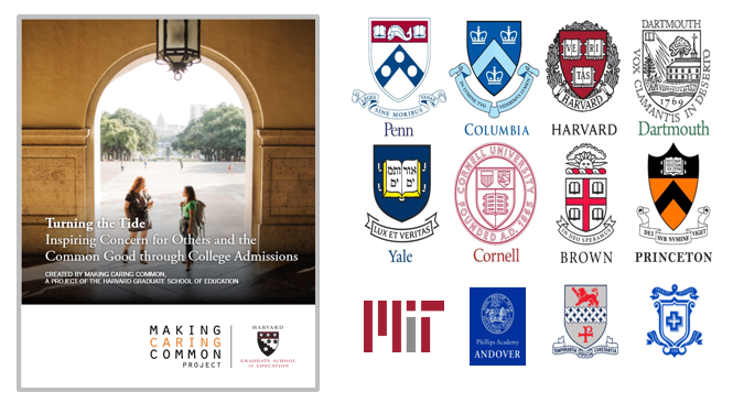 2016年哈佛大学提出了“借助大学录取之关,鼓励关爱他人之心”并得到了170多所美国大学的背书, 200余所美国优秀高中加入了这项运动,意在提升学生的社会责任感和领导力。