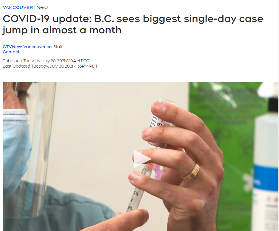 原本随着疫苗在加拿大范围内加大普及,BC省好不容易才让疫情冷却下来,可是就在昨天 (7 月 20 日),当地的单日新增病例再次上升,以 76 例创下本月高点。