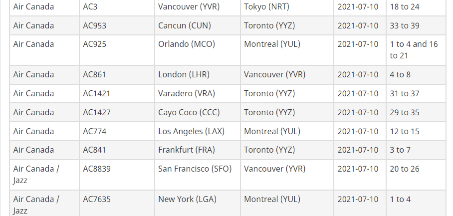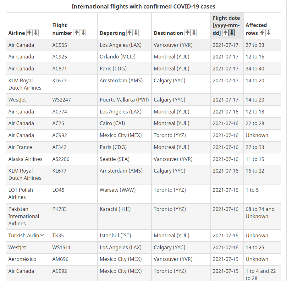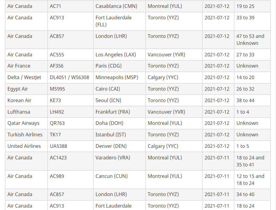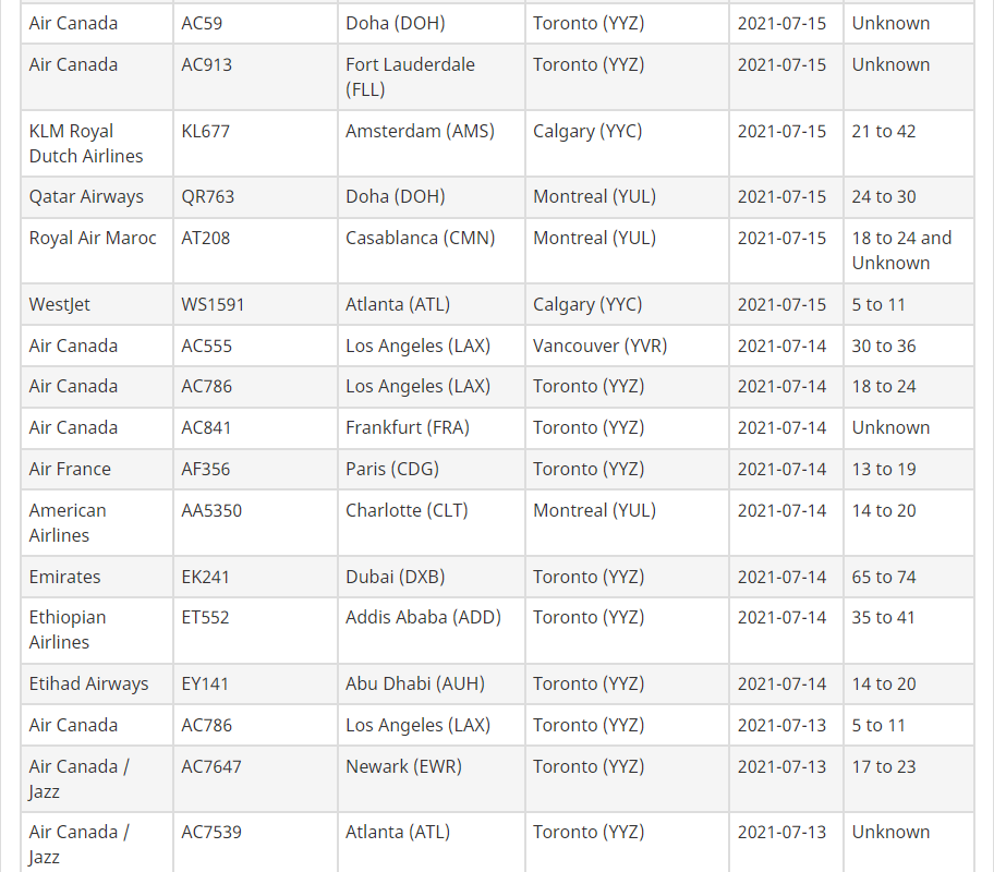 加航这一系列操作不免让人担心,据加拿大政府近一周( 7 月 10 日至 7 月 17 日)的数据,加航每天都出现了载有新冠确诊乘客的国际航班,并且航班总数已经超过30趟,当中许多都是来自美国的航班。