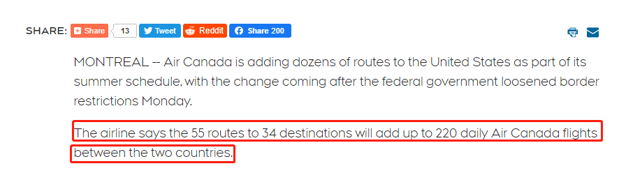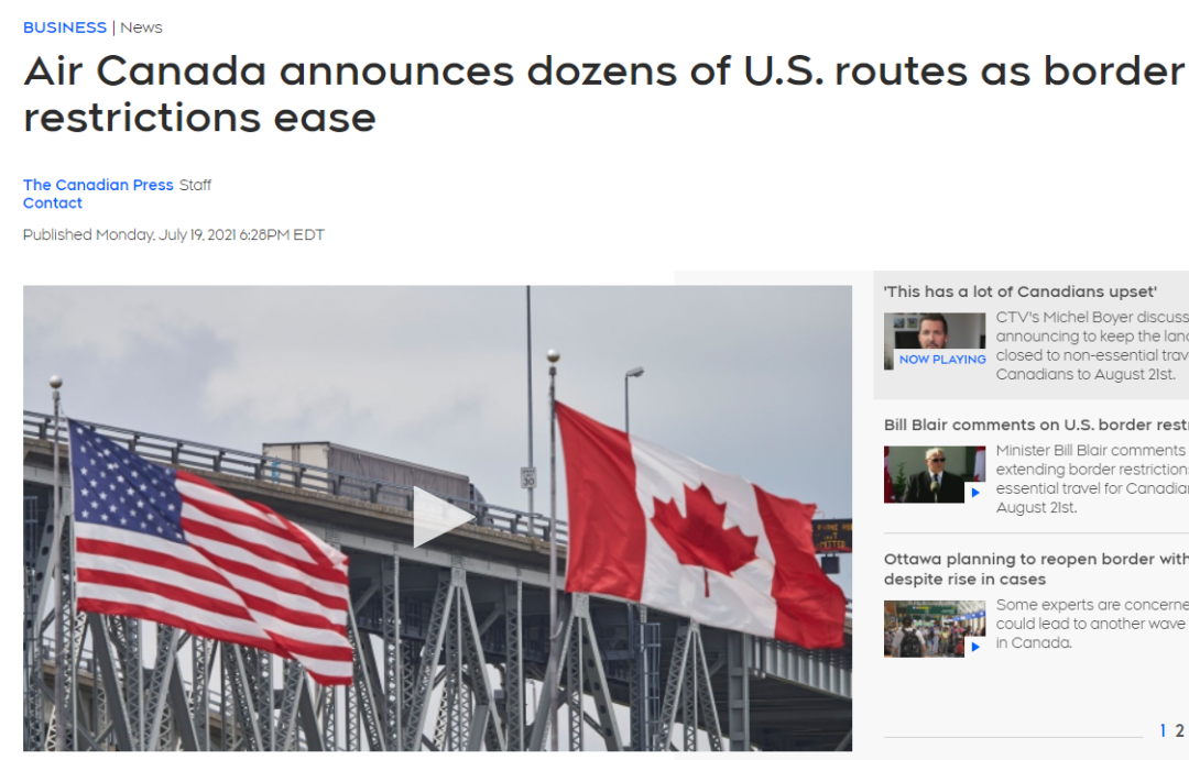 而加拿大这边,自从联邦政府宣布放松边境限制后,加拿大航空(Air Canada)似乎已经彻底放开怀抱迎接美国旅客了。