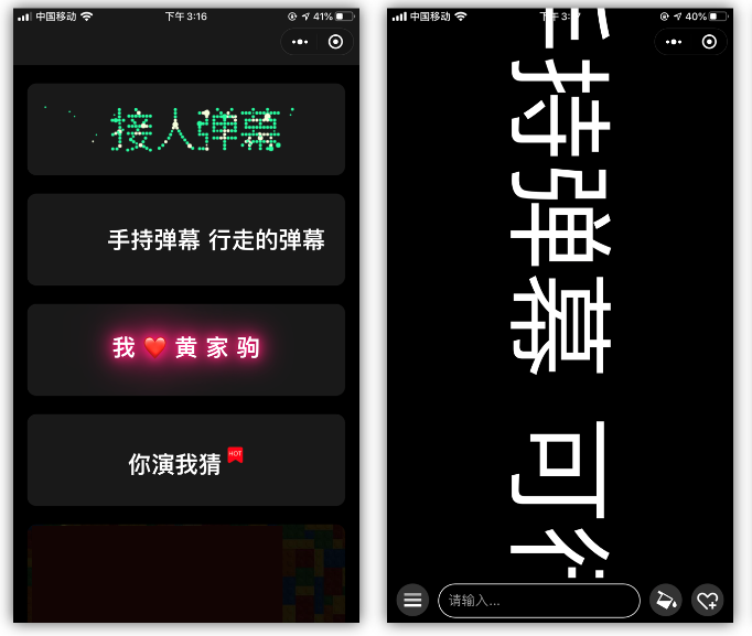 手机可以秒变手机全屏弹幕器,在机场、演唱会,你一定看到有人用过,自己也想要试试,可以使用这个小程序,输入文字就能呈现弹幕效果,超酷炫。