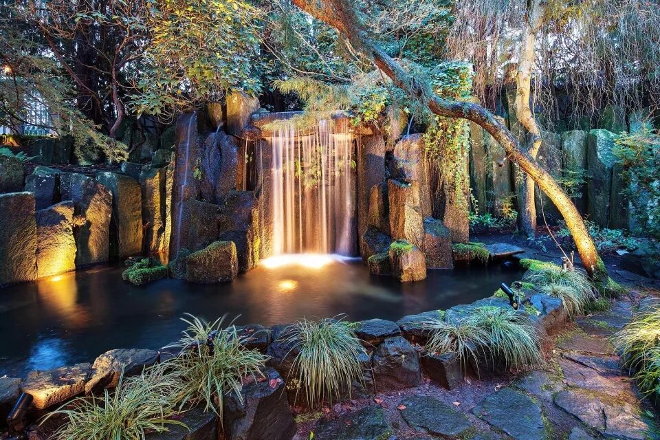 一共配套六个停车位,还有有一个花园瀑布,包括一个别墅大堂。
