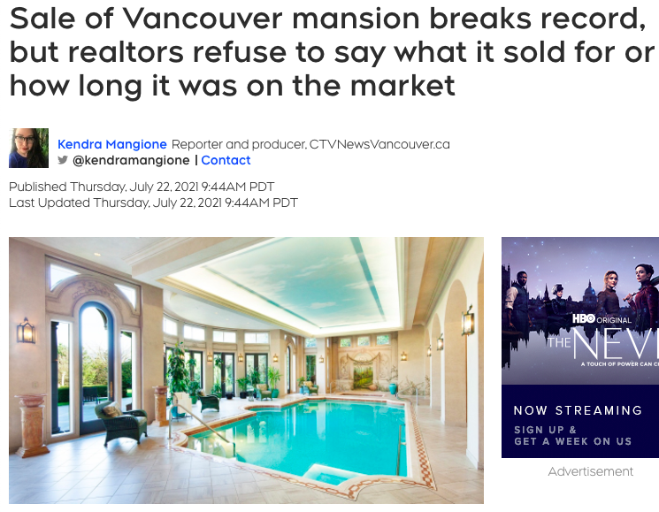 苏富比公司唯一肯确认的是,大温哥华地区之前的最高价成交记录是3110万加元,时间发生在2016年,而贝尔蒙特别墅是以比这还高的价格售出。
