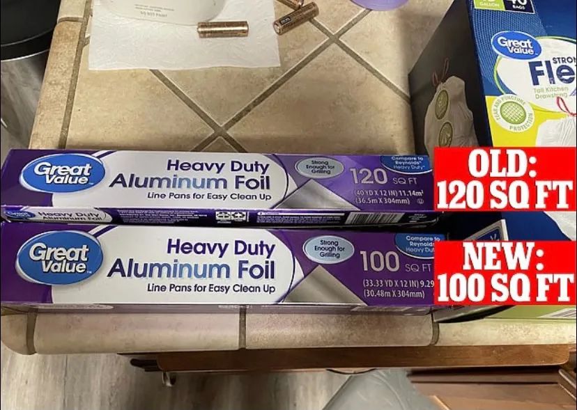 沃尔玛自有品牌的铝箔纸从120平方英尺缩小到100平方英尺????