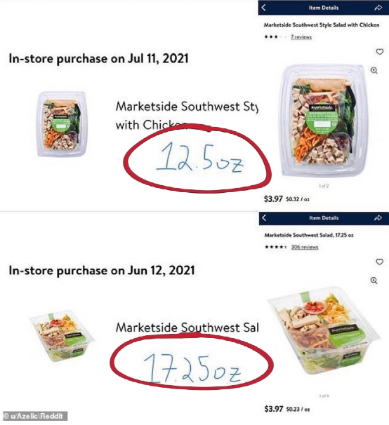 沃尔玛沙拉从17.5盎司减少到12.5盎司,有顾客称:“我吃完了仍然很饿,这才发现量变少了”????